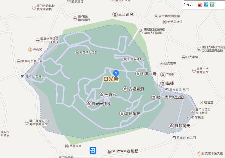 日光岩,俗稱岩仔山,又稱晃岩,是一塊高40多米的巨石,位於廈門鼓浪嶼龍頭山的頂端,為鼓浪嶼最高峰(海拔92.68米)。日光岩是鼓浪嶼上的著名景觀,頂端建有圓台,可供遊人觀賞鼓浪嶼全島的景觀。