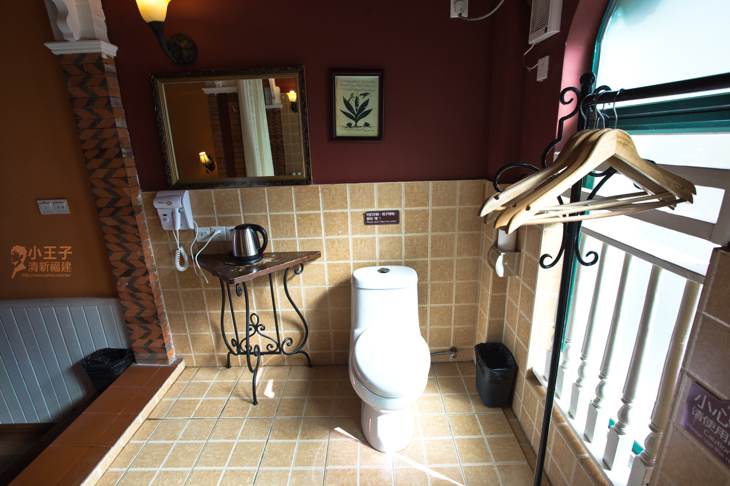 浴室雖然沒有隔開,但是細節上來說算是作很不錯,像是維多利亞風格的浴缸、掛衣架以及相關備品,算是一個服務周到的內容。