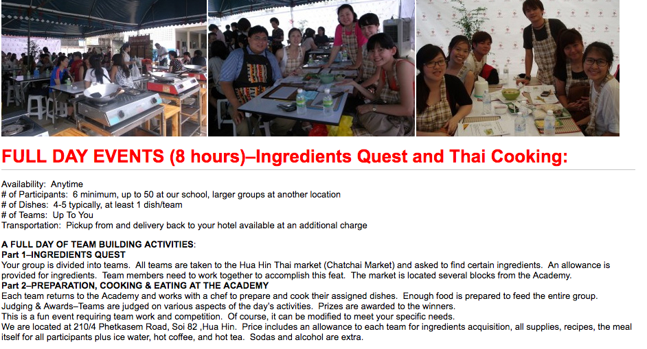 [Hua Hin Thai Cooking Academy活動相關資料]