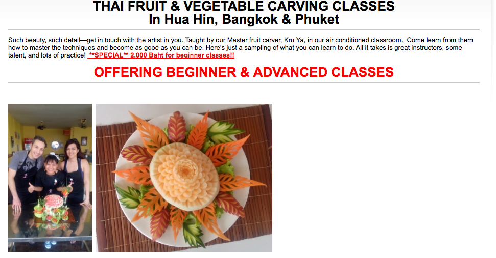 華欣泰式料理教室Hua Hin Thai Cooking Academy是一家服務非常完整的料理教室,從一般體驗、水果彫刻、廚師級課程到團體活動都可以安排。