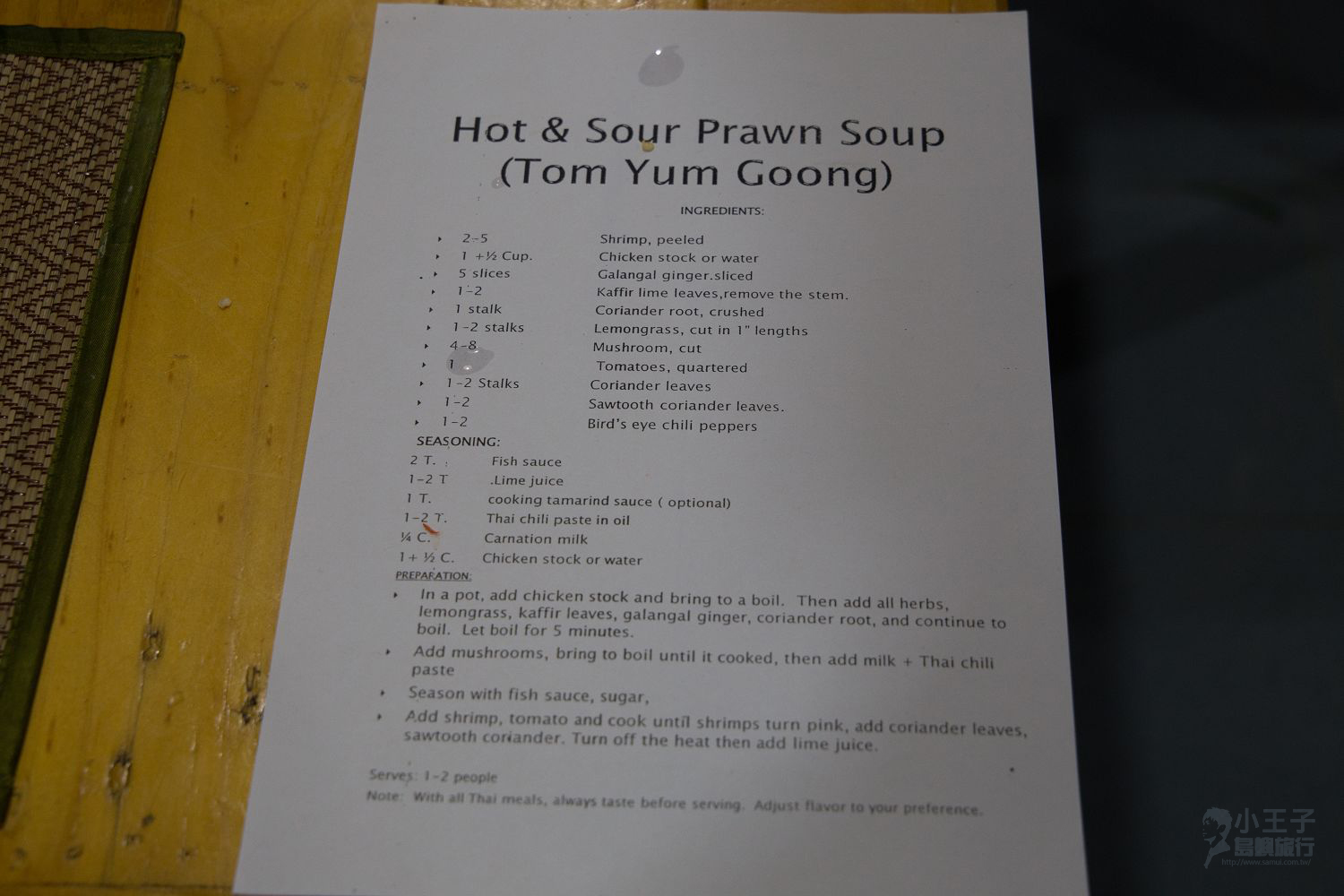 因為時間很有限,所以我們只做了「泰式酸辣湯Tom Yum Goong」通常泰式料理教室的體驗課程應該至少都有三道料理以上。