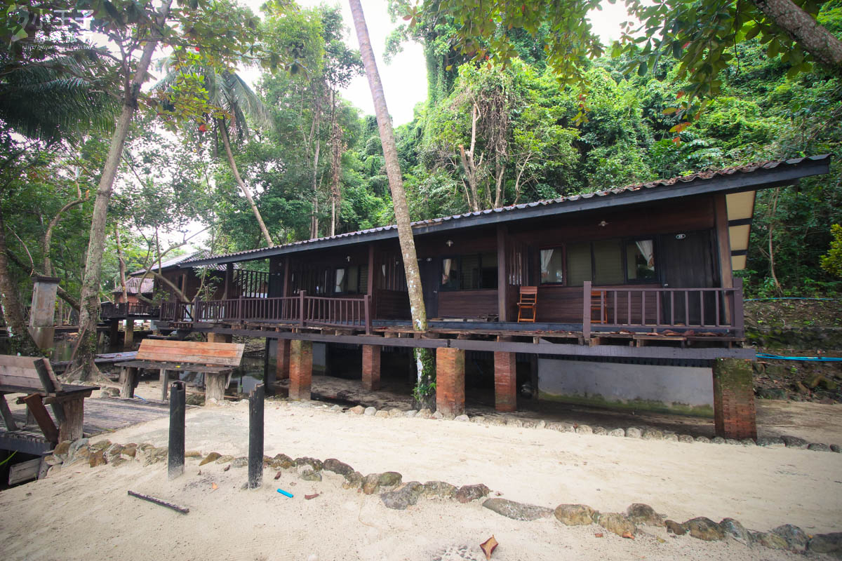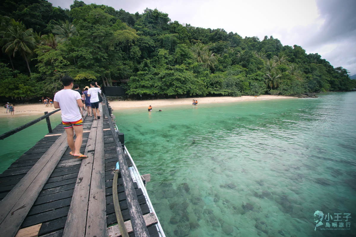 遠遠的就可以看見白色的沙灘,綿延的在綠色的島嶼邊緣,這裡的沙灘延伸出去許多的礁石,島上還有一些住宿的房間,並且有些簡易開發的步行道路。