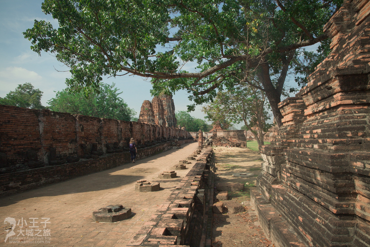 泰國大城的寺廟建築眾多,每一間廟宇都有屬於自己特殊的背景故事以及建築樣式,因為戰爭的緣故,當年華麗的外觀已不復見,但卻可以從磚塊堆砌,幾何的造型,門與階梯的設計,整個區域的規劃,看見泰國廟宇文化當中最基本的設計樣貌,這對映出許多現在我們所熟知的大型泰國廟宇,就是從這樣的發展過程中,一點一點變化與呈現出來。